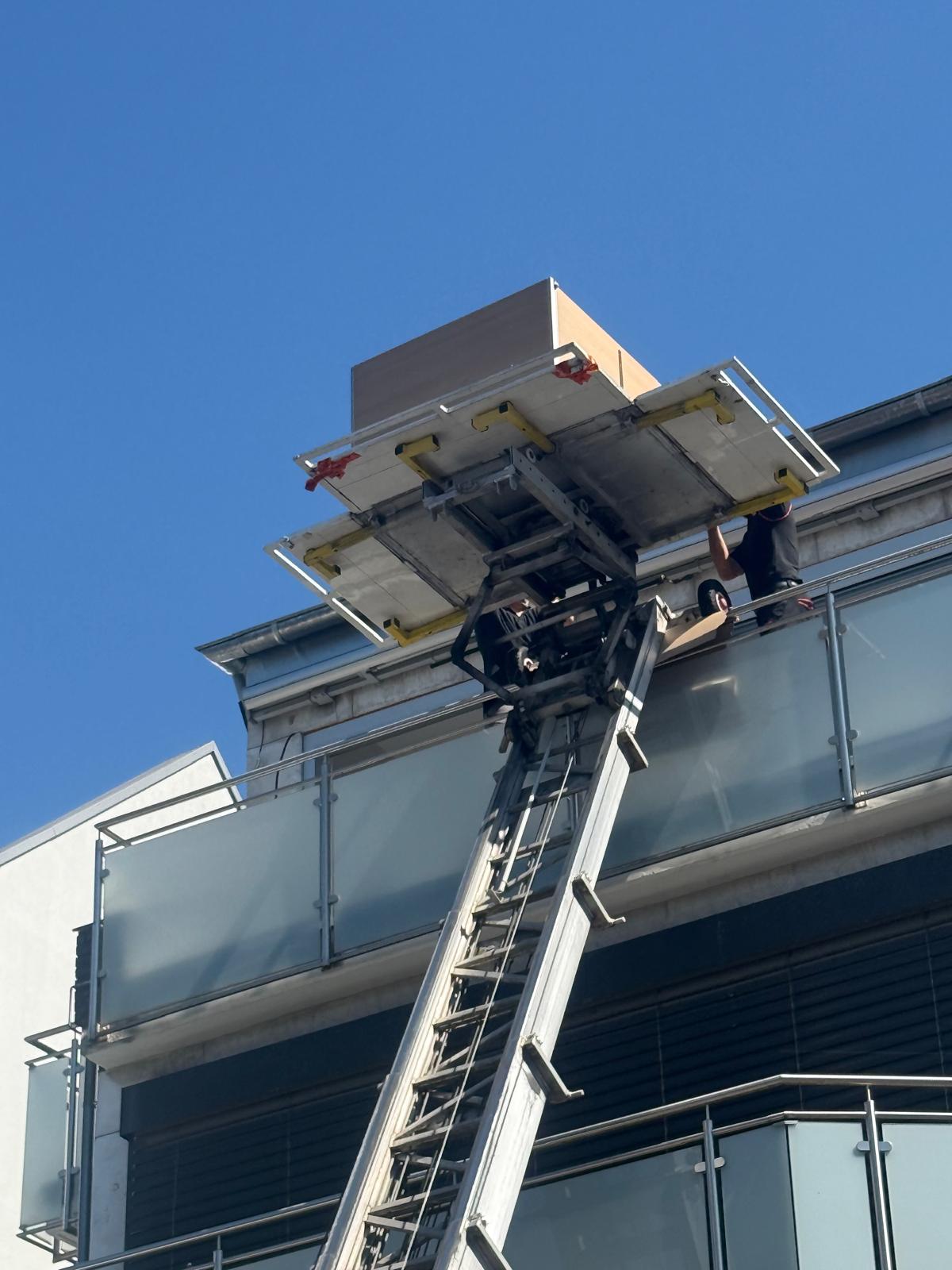 Mit unserem Möbellift (Außenaufzug) bringen Sie Ihre Möbel sicher und mühelos nach oben – ganz ohne Stress und ohne Schäden an Wänden oder Treppenhäusern.